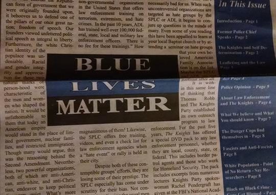 We want to remind all associates that this is an excellent time to be distributing our “Blue Lives Matter” special edition newspaper. This has a lot of great information that is important for men and women of law enforcement to read. As the BLM movement increases their attacks on the LE community and leftist media continues to portray conservatives and “right” thinking people as the enemy, we must continue our outreach to this crucial group. The Klan was on the side of law and order at its inception and must remain so today.